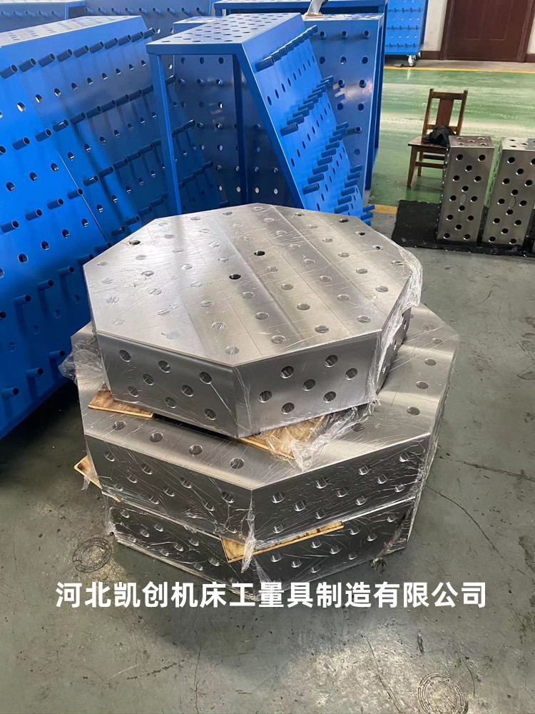 三維焊接平臺不僅僅是一個簡單的臺子,它的工作面跟上面的孔都是有精度的,工作面的平面度為每米10絲,孔距的誤差是±0.05mm,孔直徑的誤差是+0.1,只有各項精度都達到標準才能保證焊接的誤差。