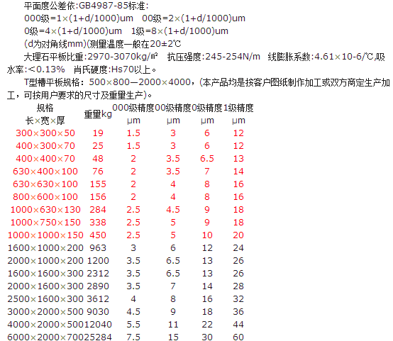 大理石T型槽平板精度:按國(guó)家標(biāo)準(zhǔn)計(jì)量檢定規(guī)程執(zhí)行,分別為0、一、二、三四個(gè)等級(jí)。