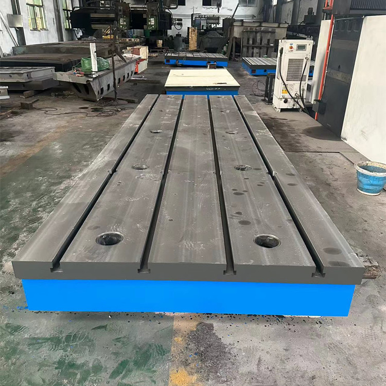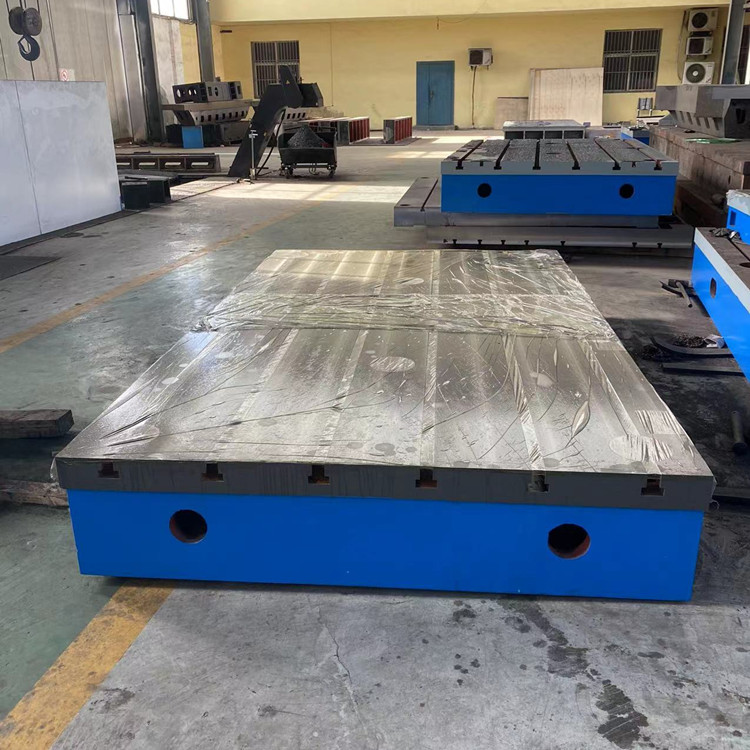 鑄鐵平臺(平板) 制造標(biāo)準(zhǔn):平臺按國家GB7947-1999標(biāo)準(zhǔn)制造。 平臺 制成筋板式和箱體式,工作面有長方形、正方形或圓形。工作面采用刮削工藝,工作面上可加工V形、T形、U形槽和圓孔、長孔等。